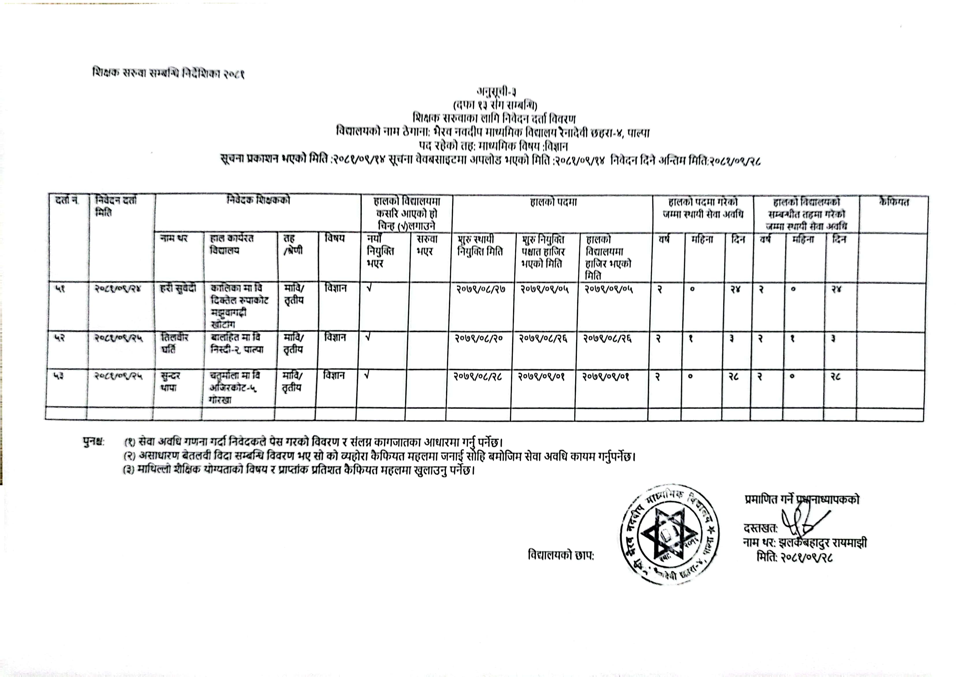 सरुवाको लागि प्राप्त निवेदनहरु