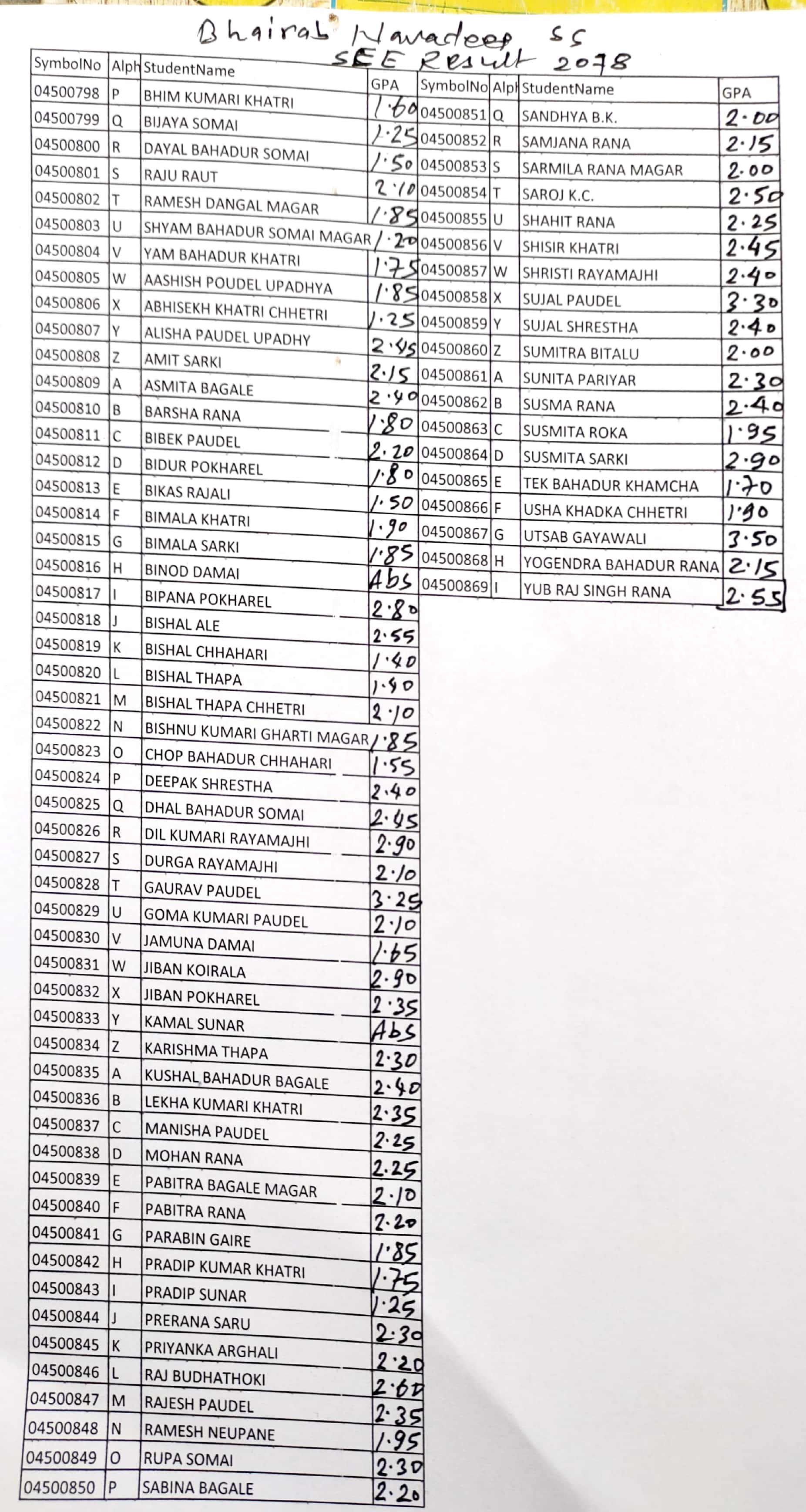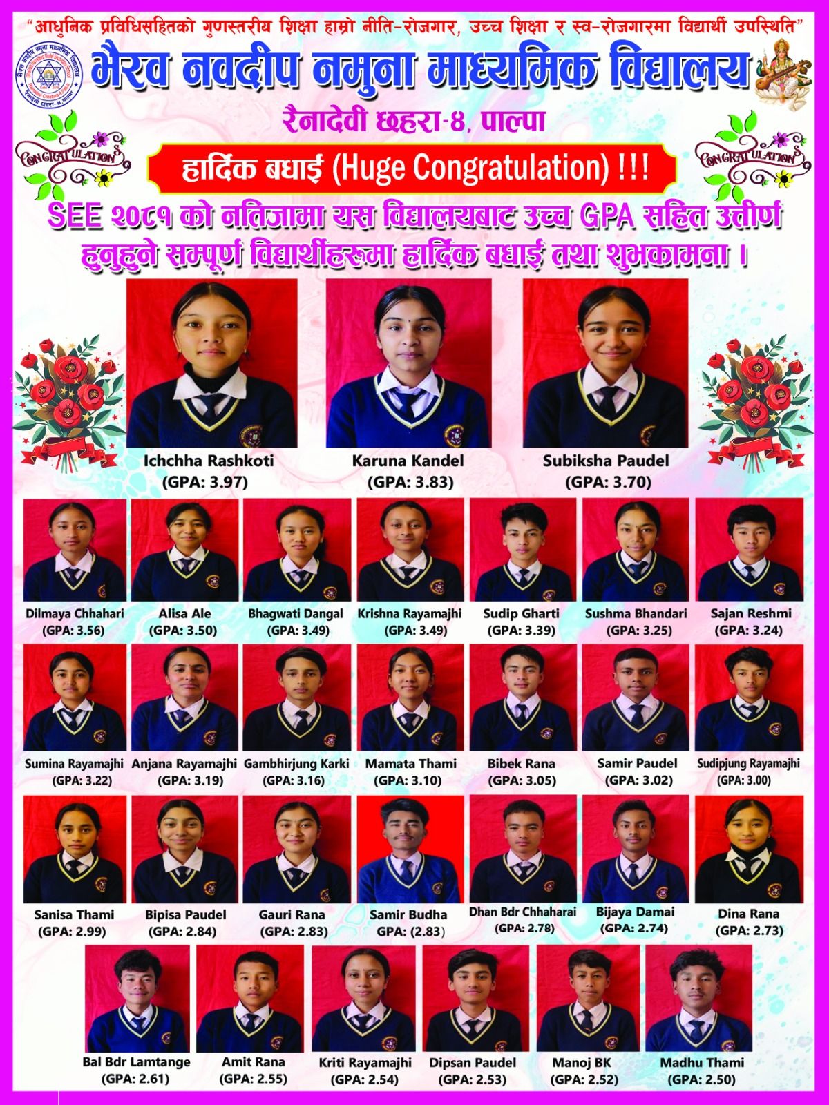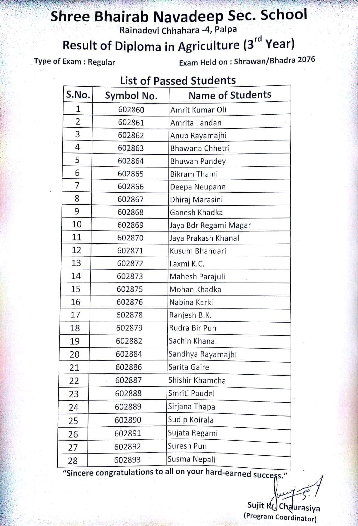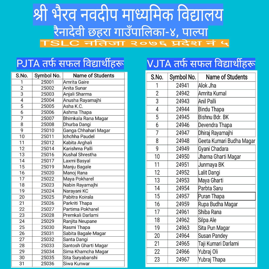 शैक्षिक वर्ष २०७७ को नतिजा (प्रकाशित मिति २०७८/०२/२७) |